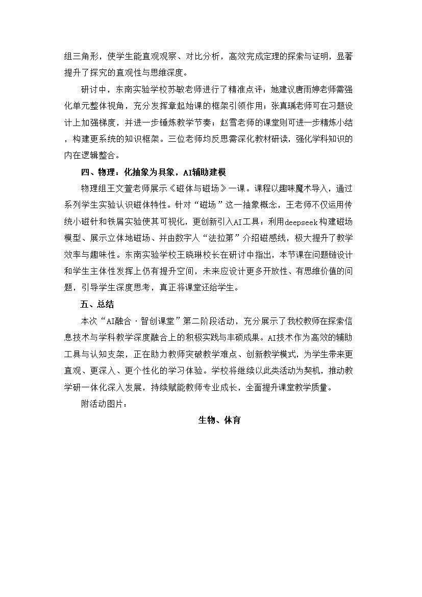“AI赋能·智创课堂”——汤山中学AI融合教学展示(生物、体育、数学、物理专场)