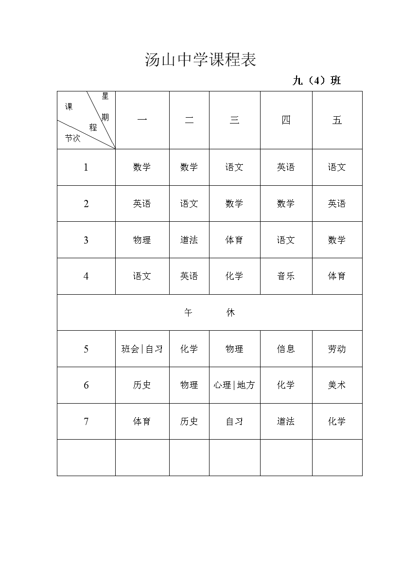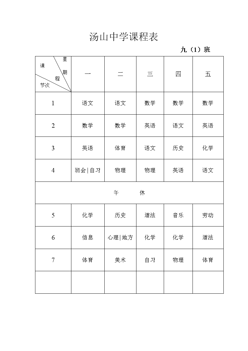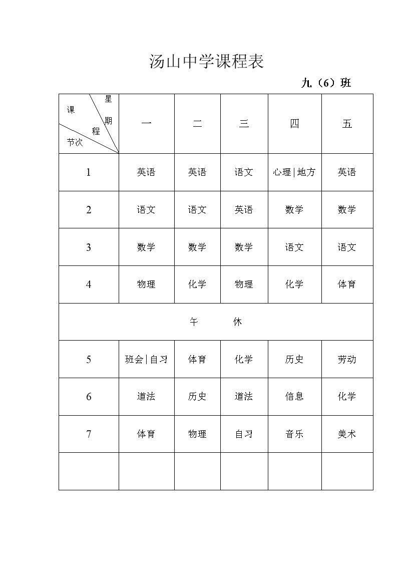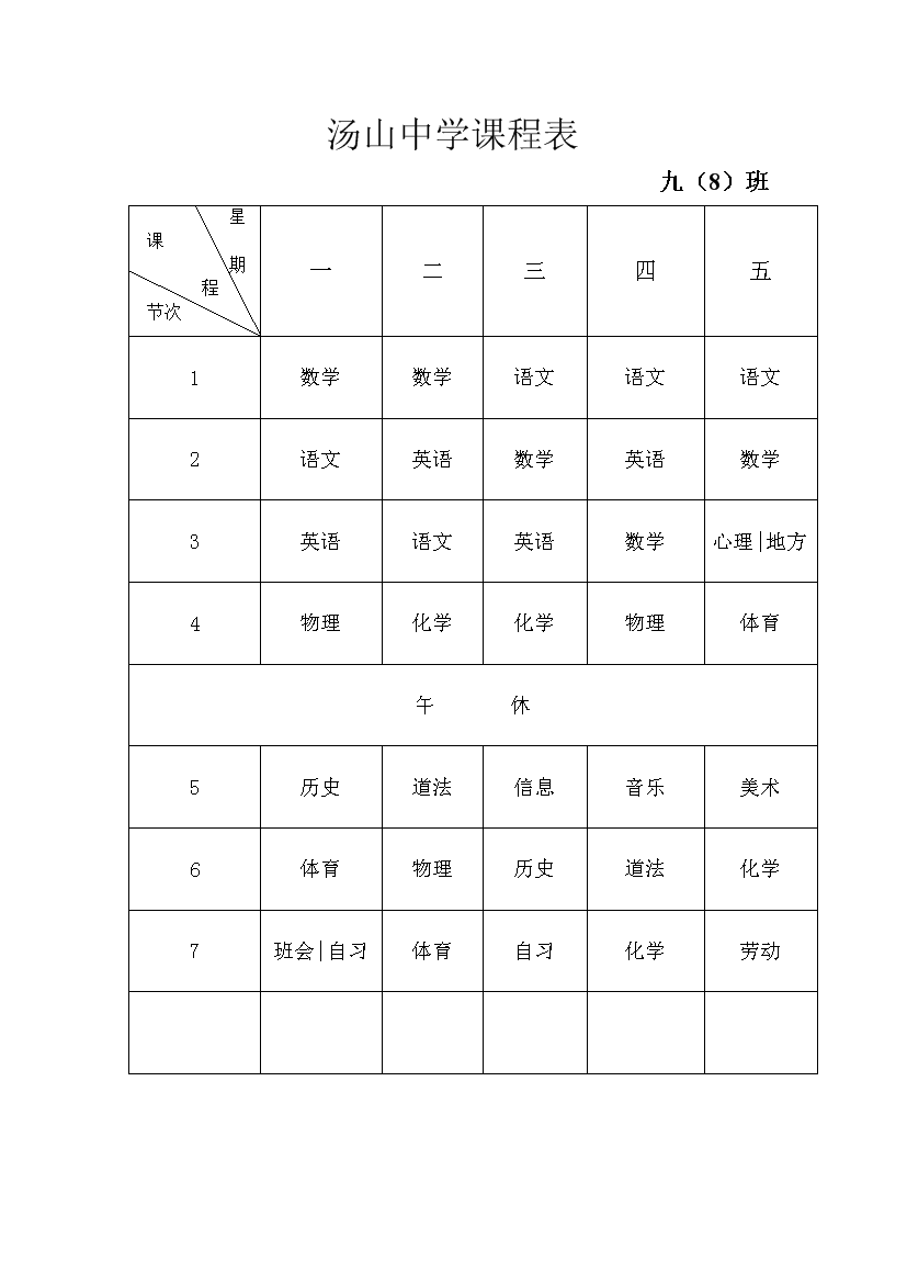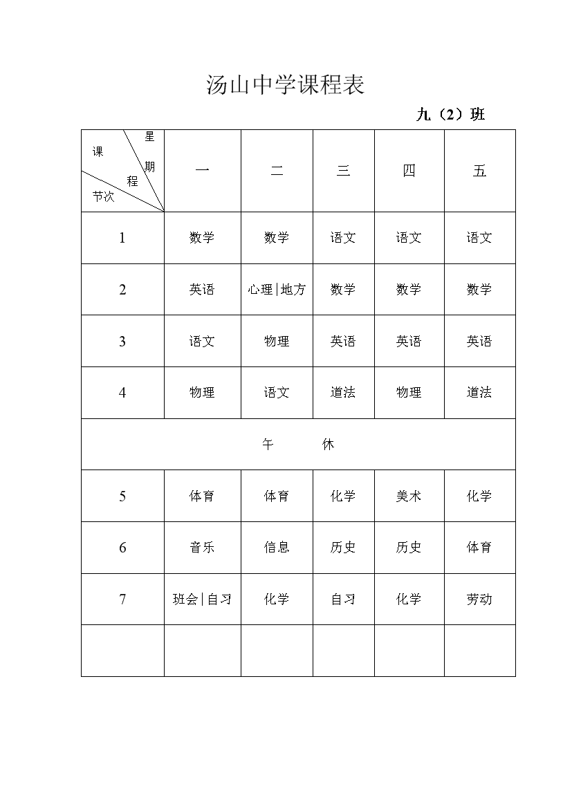 2025-2026学年汤山中学课程表