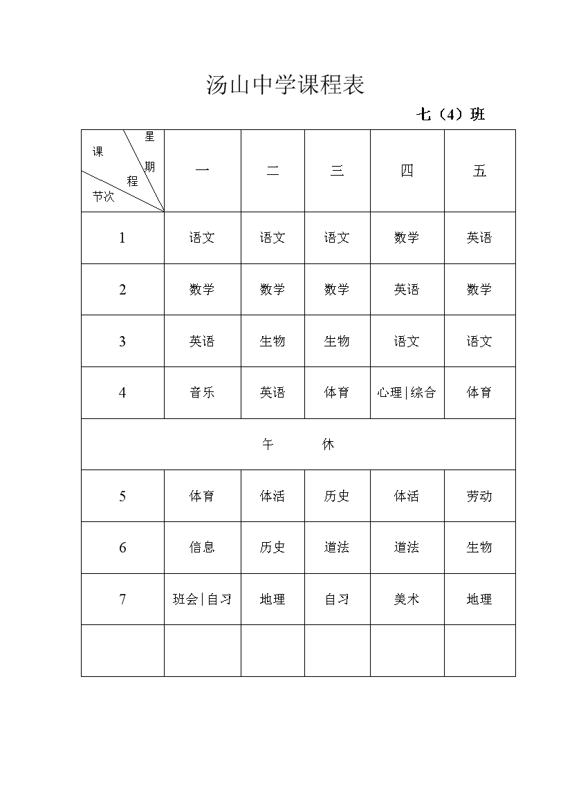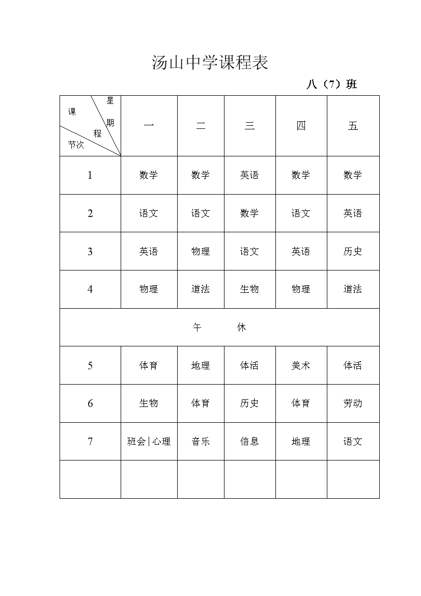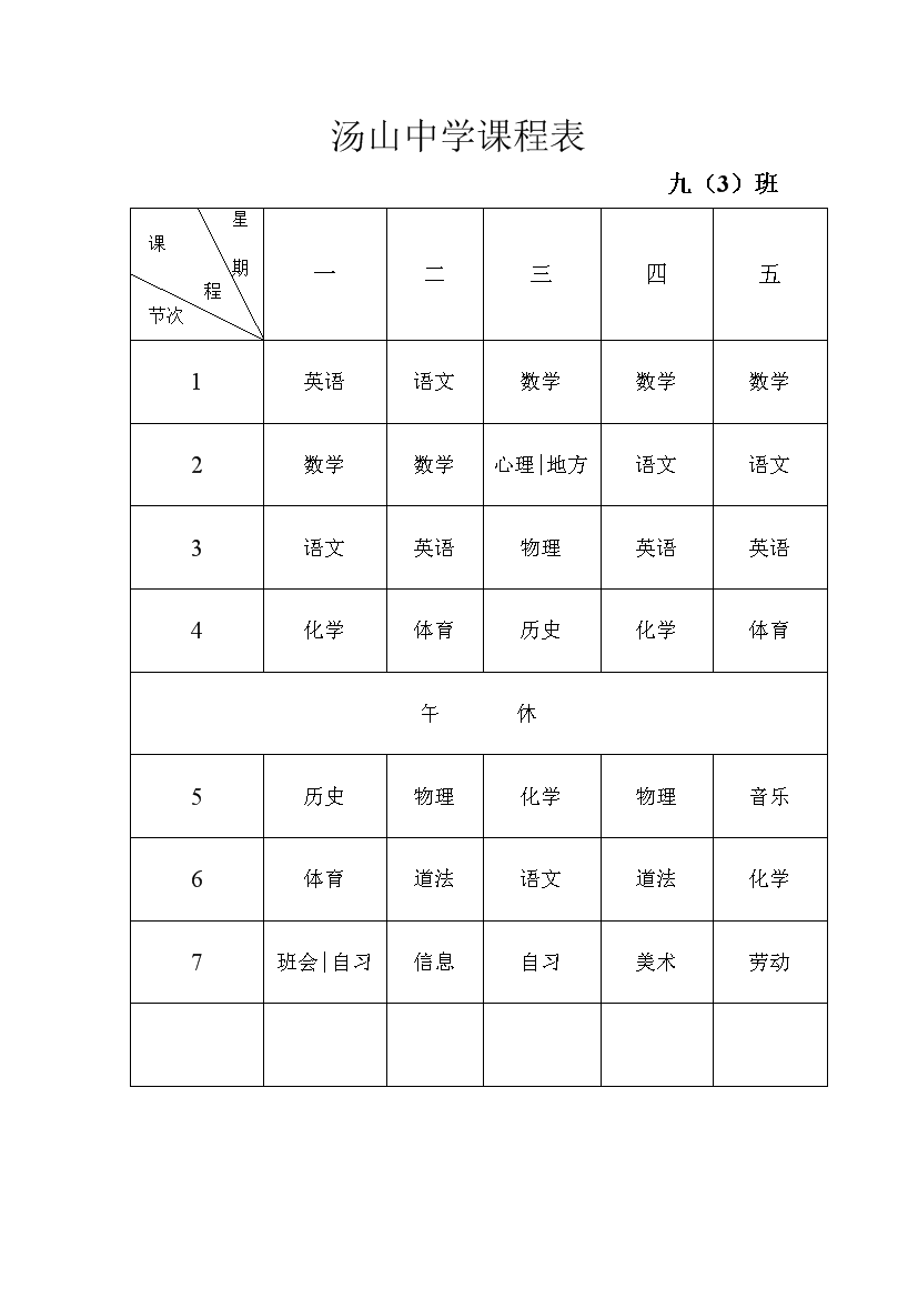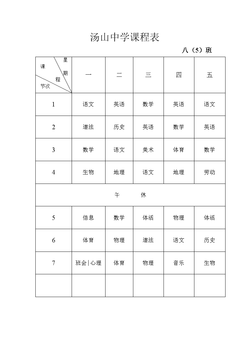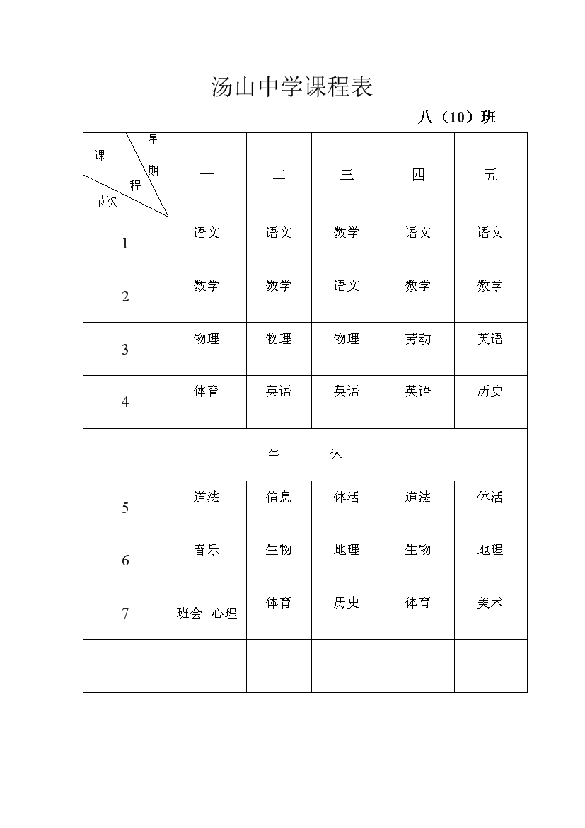 2025-2026学年汤山中学课程表